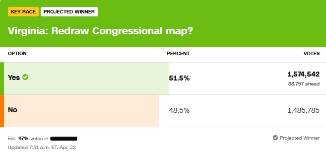 Tuesday’s referendum drew a multimillion-dollar campaign to persuade Virginians to alter the state constitution to temporarily allow lines crafted by the state’s Democratic-controlled legislature to govern the election this fall, in 2028 and in 2030.